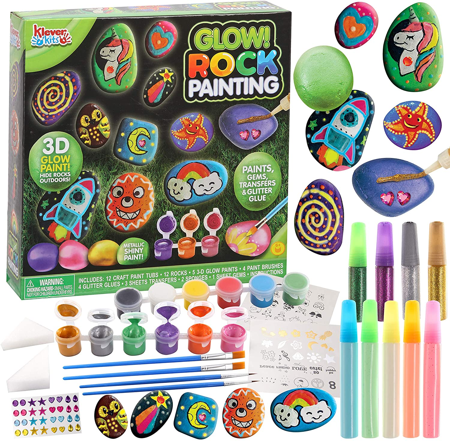The Glow Rock Painting kit is the perfect activity set for kids who love to be creative. The rocks are a unique canvas for painting, and the different paints, stickers, and gems provide hours of fun. The brushes and sponges make it easy to create beautiful designs, and the glow-in-the-dark paints add an extra bit of fun. The instruction booklet provides helpful tips and tricks for creating the perfect masterpiece. This set is the perfect way to encourage your kids to love nature and express their creativity.